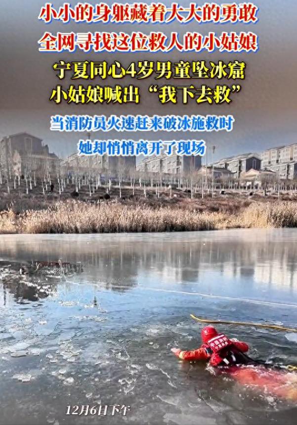 时间倒回到12月6日下午,宁夏吴忠市同心县的一处结冰水域。那天的冰面并不结实,一个年仅4岁的小男童意外坠入冰窟。如果你见过北方的冬河,就会知道那种场面有多绝望:黑色的河水在冰层裂缝下翻滚,落水的孩子相当于直接掉进了一个正在封口的冰棺材里。