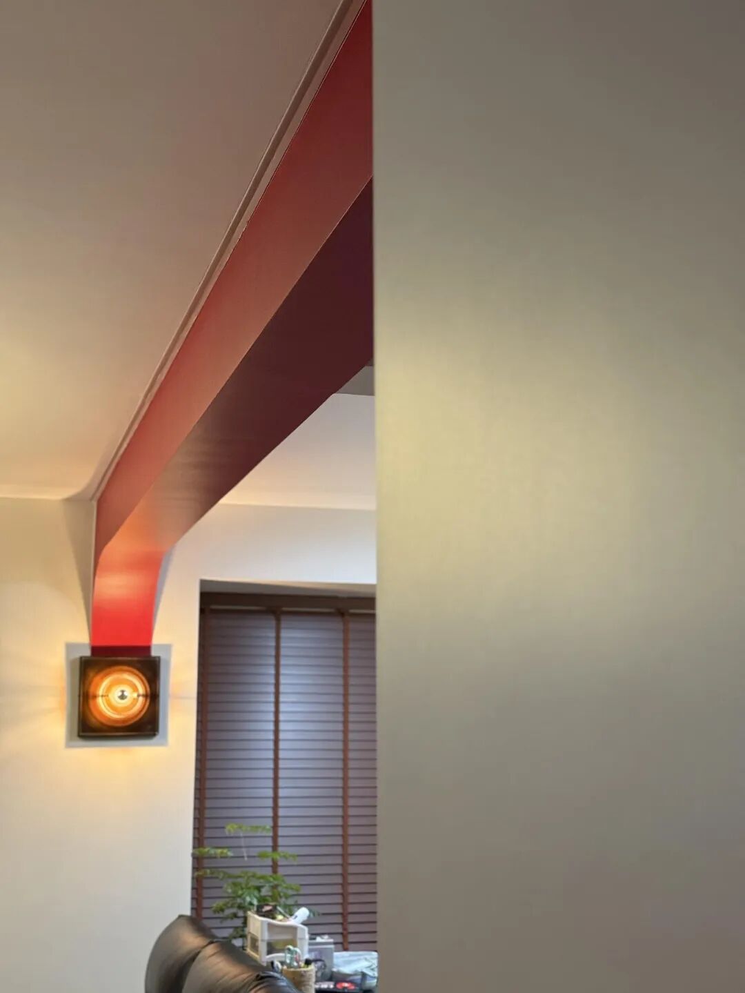 翻遍乳胶漆色板总算定下了红黄蓝三个颜色,本来担心上墙颜色太深,没想到正正好,完工后好爱我的彩色梁。