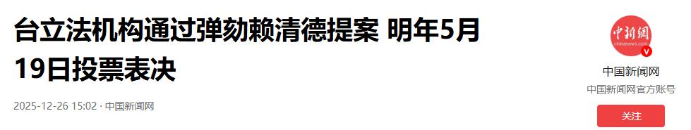 而此刻最焦头烂额的,当属赖清德了,解放军的军演刚开场,他就接连收到两个致命噩耗。12 月 26 日,台湾省立法机构对他的弹劾提案以 60:51 的票数通过,虽然还没到最终的解职裁定,但国民党和民众党的联手已经让他的处境岌岌可危,网络上支持弹劾他的网友更是高达 93%,远超他当选时的得票数量,可见岛内民众对他的不满已经到了顶点。更关键的是,新上任的国民党主席郑丽文已经明确表示,希望 2026 年上半年就能访问大陆,这明摆着是国民党急于和大陆展开合作,和赖清德的 “台独” 路线彻底划清界限,这无疑是给已经焦头烂额的赖清德又补了一刀。