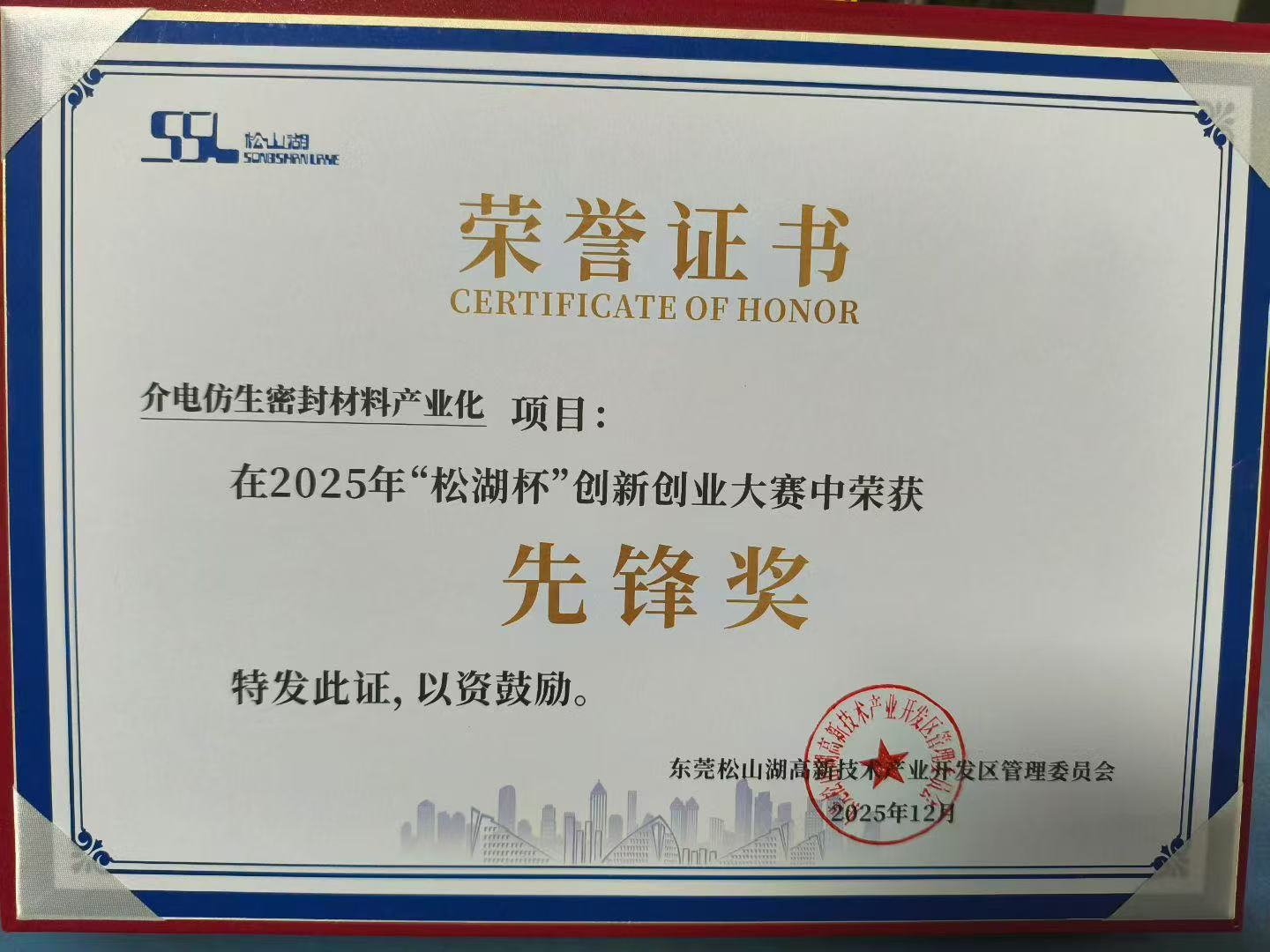此次 “松湖杯” 先锋奖的成功认定,是赛事组委会对东晟密封研发实力、技术创新水平及行业影响力的高度肯定。公司将以此为重要契机,进一步整合松山湖创新创业生态资源,扩充核心研发团队,聚焦密封材料与新能源、人工智能领域的融合创新,持续强化产品核心竞争力,稳步提升市场占有率!
