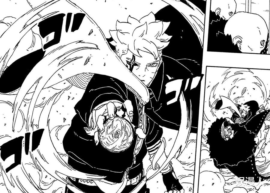 此时的漩涡博人,招式一气呵成,很容易就除掉眼前人神树“虫”的分裂体,之后开启白眼,寻找别的分裂体,在使用飞雷神之术和超大玉螺旋丸等招式后,周围的分裂体被清理完了,漩涡博人急忙去支援别的地方。