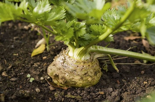 根芹这货,外表堪称“植物界的榴莲”。疙疙瘩瘩、土褐色的根球活像刚从工地挖出来的土豆泥雕塑。