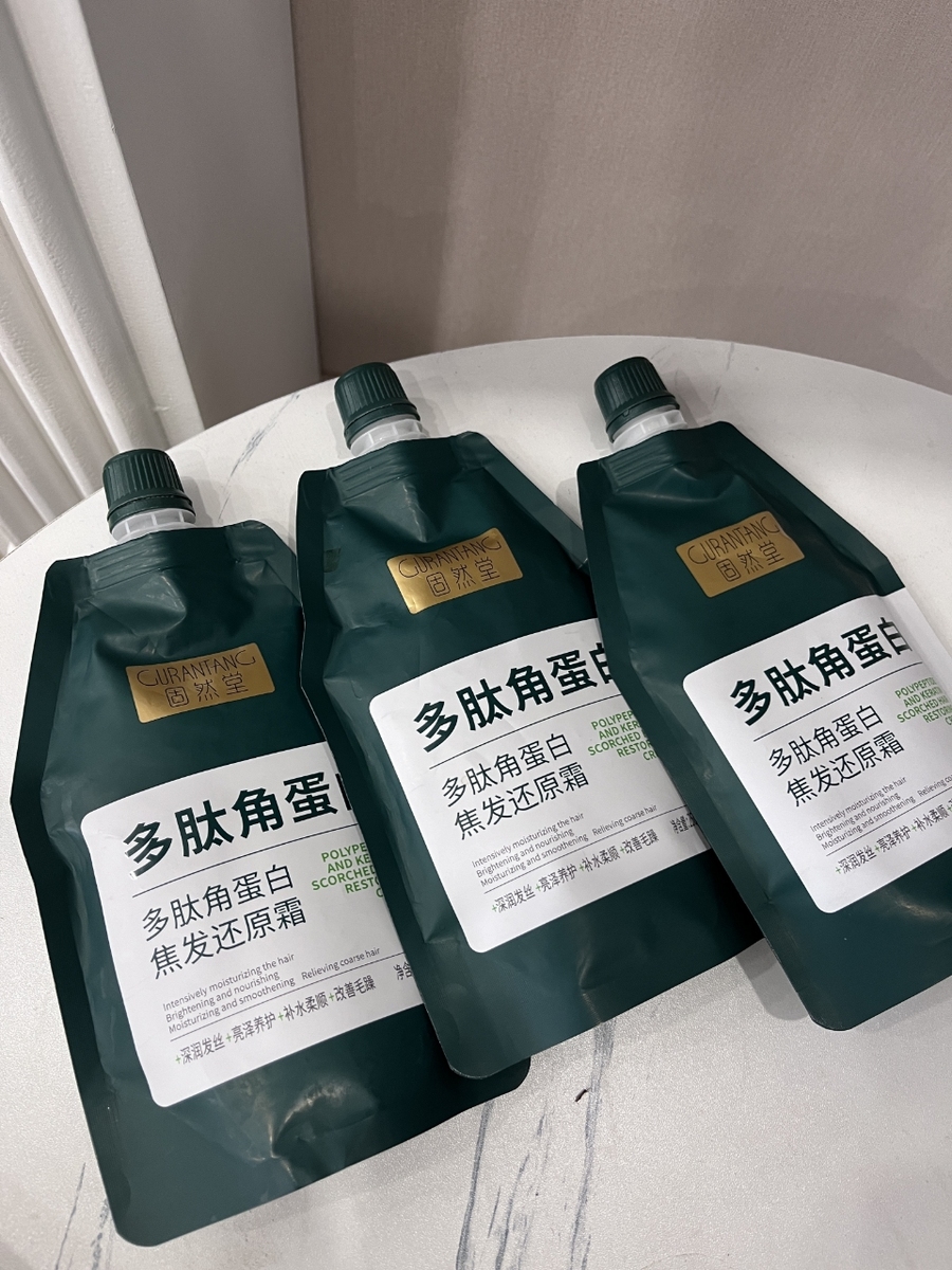 固然堂蛋白发膜成立于2018年,源自中国广州,最初是以头皮护理研究为方向成立的个护品牌,后来逐渐将重心转向秀发养护类产品开发,主要涉及发膜、洗发乳等日常护理系列,包装设计偏日系极简风,通常采用低饱和色调搭配手写体文字,在小红书和抖音等平台能看到一些用户自发分享的使用记录。