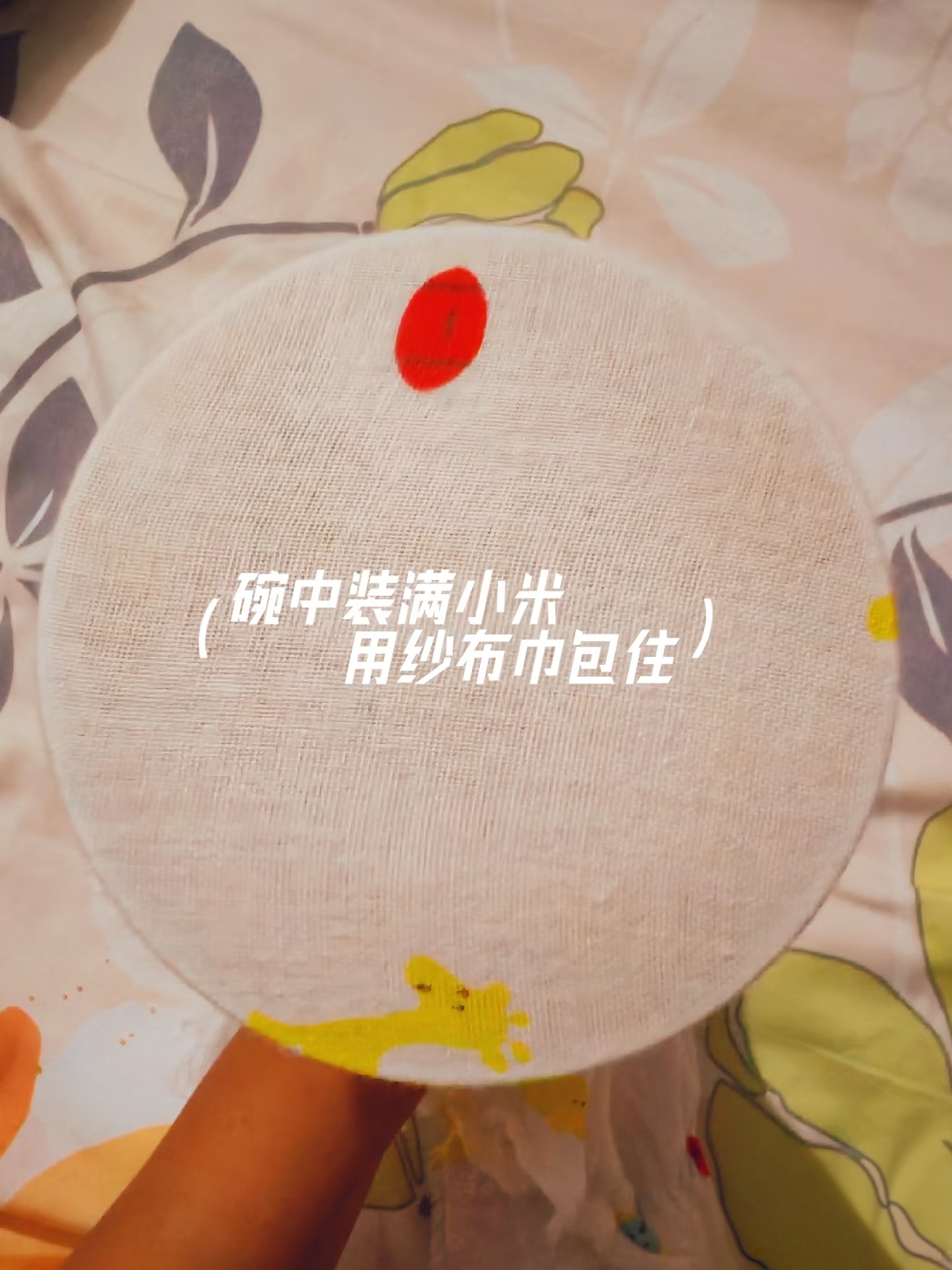 1. 准备一个陶瓷杯或碗,装满小米,稍微压实