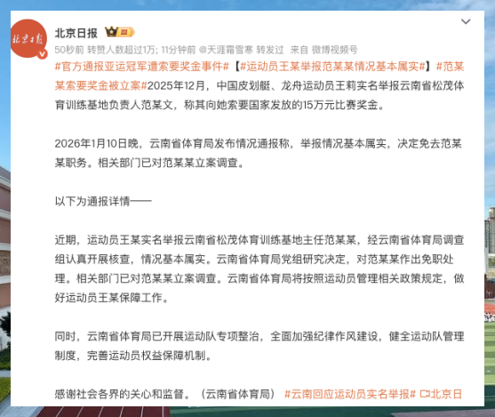 看到云南省体育局那份深夜发布的通报时,我正刷着手机里的体育新闻。