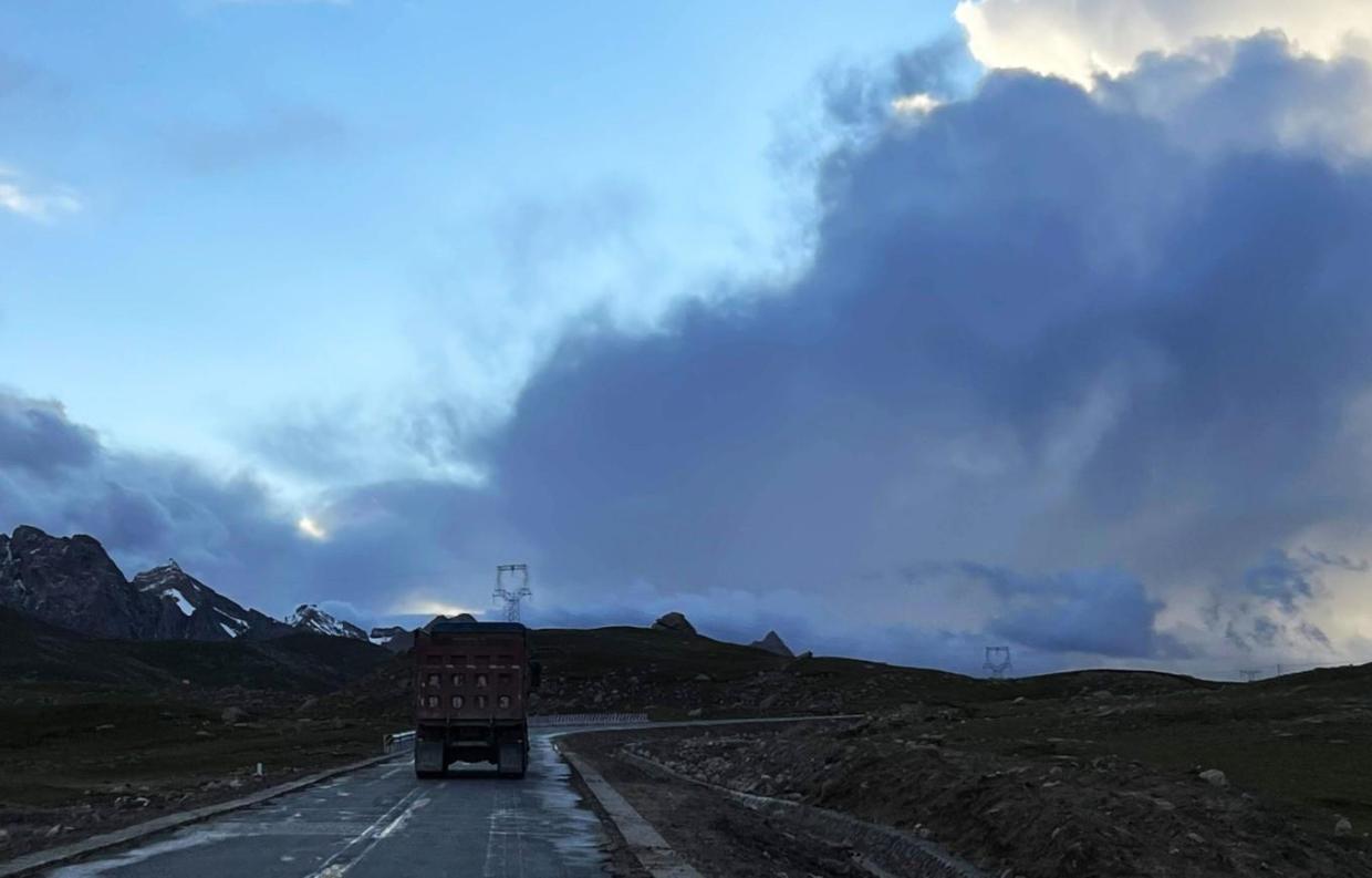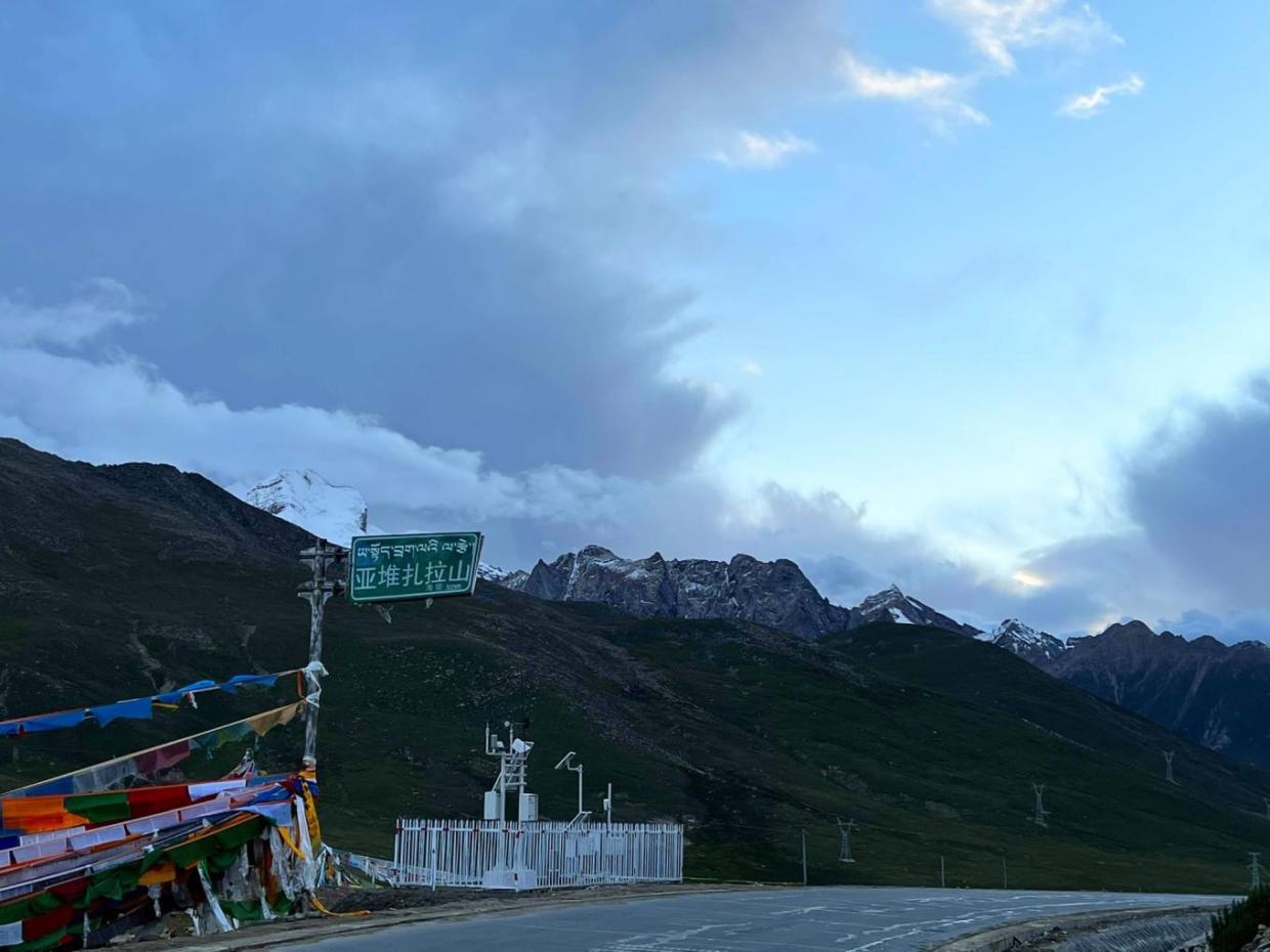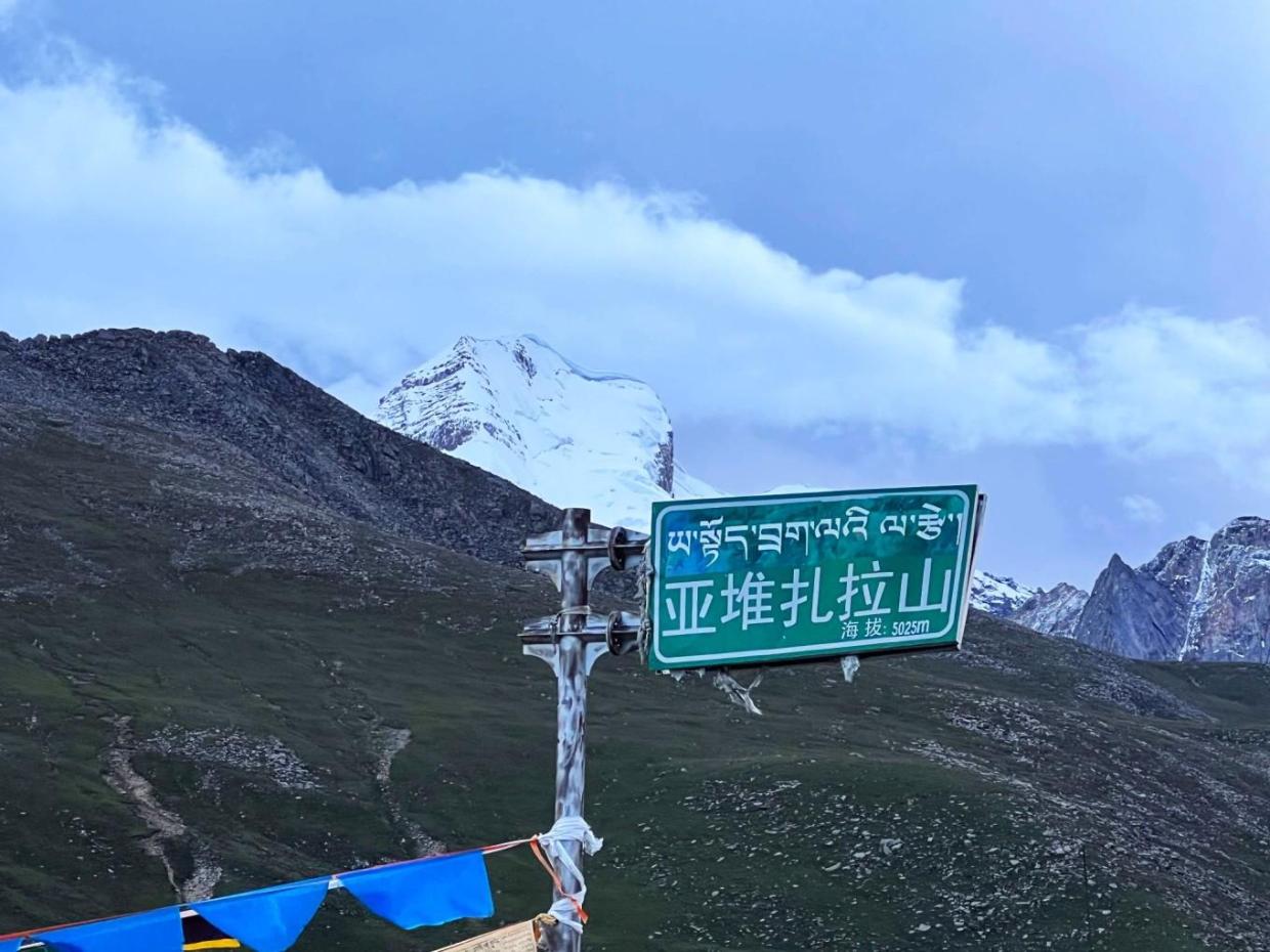 道路的最高点是亚堆扎拉山雪山垭口,这一次我们的手机海拔高程和标志路牌上的极其近似,又一次海拔5000米以上的体验。
