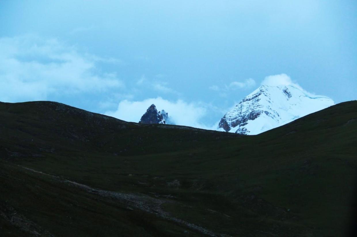 盘旋而上的道路,似乎都在围绕几座雪峰而行,车窗外不时闪现的皑皑白雪让我们忘记正处于盛夏的季节,有的雪峰离着很近,感觉只要爬上前面的小小山坡,就会直面高大巍峨的雪山冰川。