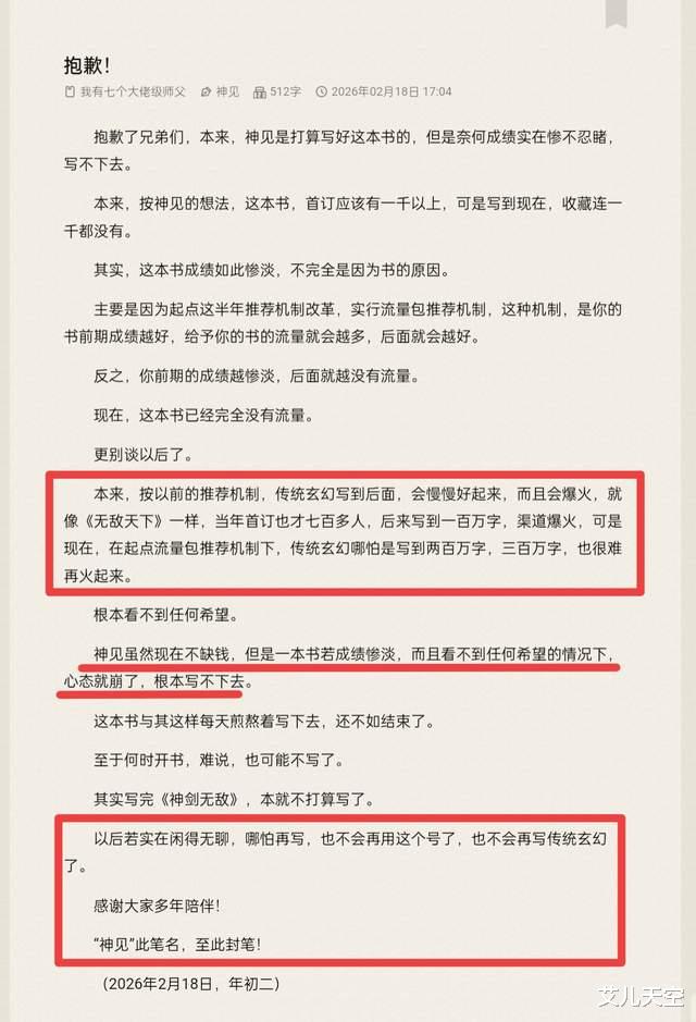 随着最近的两连切,他也决定封笔这个账号,后续不再写传统玄幻小说了,甚至可能就此封笔了。