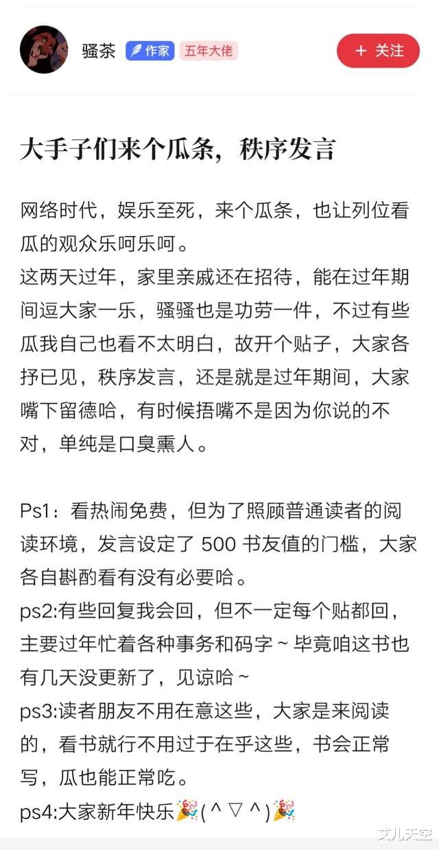 与此同时,作者也有自己在书评区发了专门的吃瓜帖,喜欢凑热闹的可以移步瞅瞅。