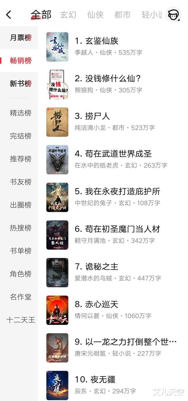捞尸人则是请假停更十天了,作者因身体问题需要看医生,所以畅销榜就下滑下来了。