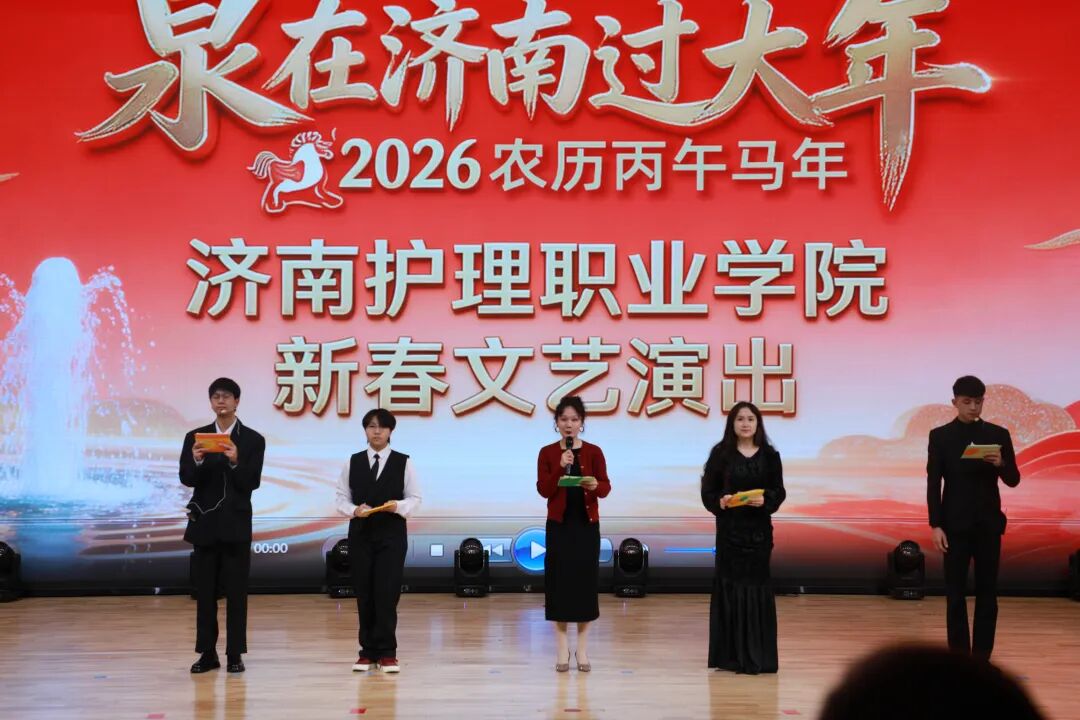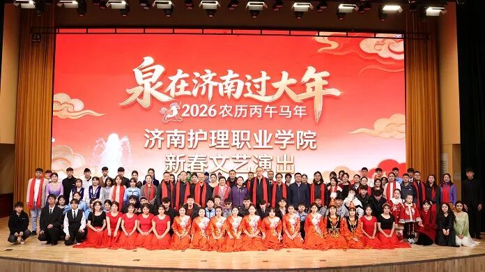 “泉” 城暖意融融,济护情谊浓浓!学院重华堂内欢歌笑语,“泉”在济南过大年新春文艺演出拉开帷幕。文艺演出精彩纷呈,石榴籽艺术社团的同学们演绎了《欢乐启航,舞力全开》《雪龙吟》《万疆》《未来由我闪耀》;学院教师及家属演唱歌曲《江山无限》《敕勒歌》《365个祝福》,快板《同仁堂》、三句半《新春启新程》;还有共同编班、共同住宿的本地学生专门赶来献上歌曲,共度佳节。丰富多彩、形式多样的文艺节目,表达了中华儿女对伟大祖国的赞美与祝福,对美好未来的向往与期待。