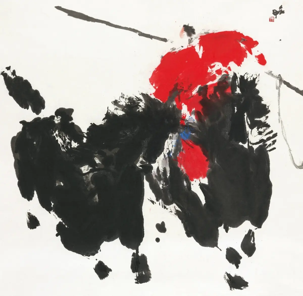 步入当代,画马艺术呈现出去中心化的多元景观。一方面,传统的笔墨语言在延续中裂变。如画家老甲(贾浩义),以如椽巨笔、浓重焦墨创作“大写意”马,形体几近抽象,强调笔墨冲撞的视觉冲击与原始生命力的喷薄,被称为“黑色的震撼”。另一方面,马的形象被纳入更广阔的观念艺术领域。它可能作为文化符号,出现在跨媒介装置中,用以反思传统与现代、东方与西方的对话;也可能在生态艺术中,成为草原文明消逝或自然伦理的隐喻。年轻一代艺术家,则在数字虚拟、影像等新媒介中,重新定义“马”的存在。