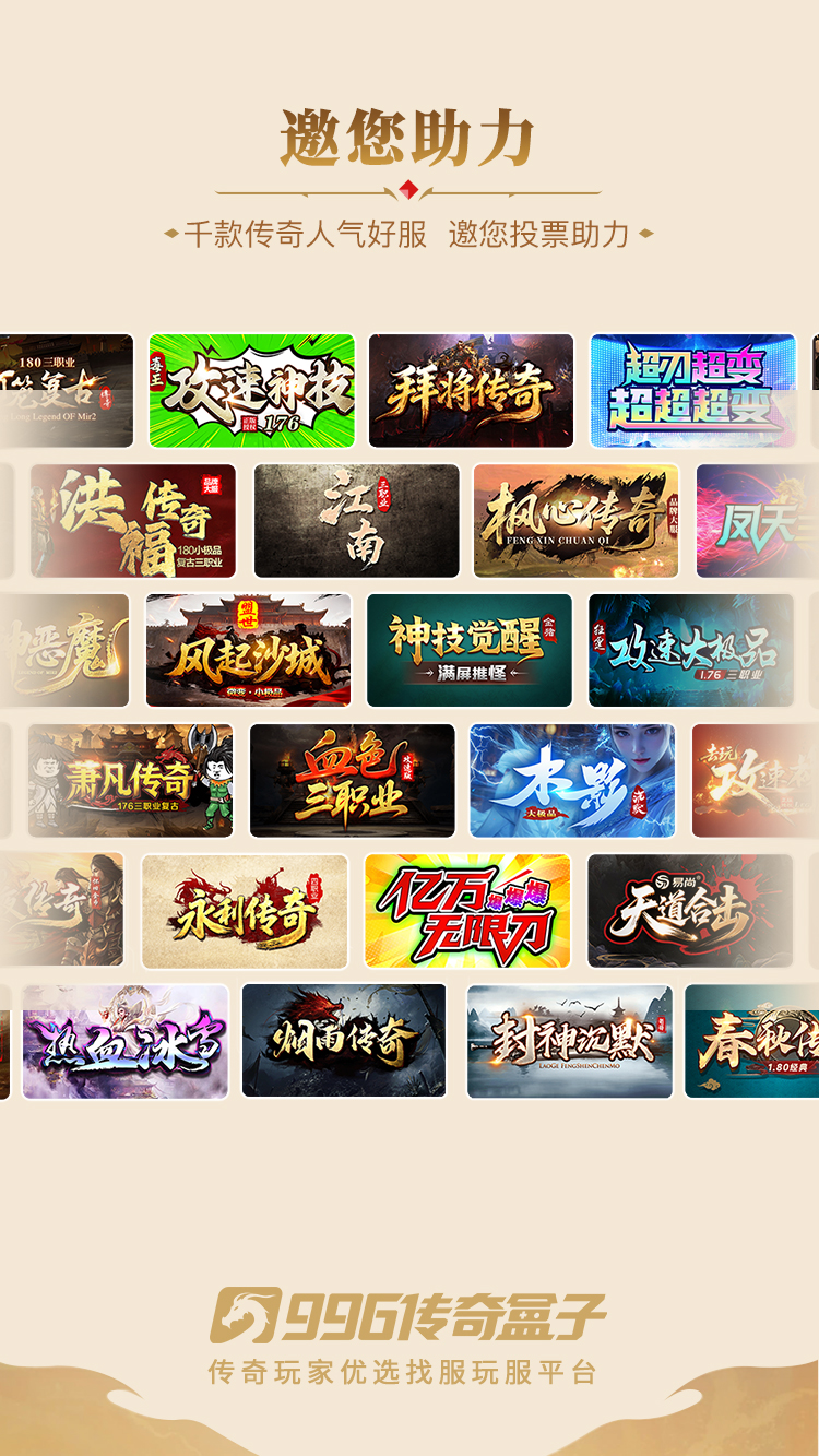 2024年,996传奇盒子推出年度传奇大赏盛典,旨在与全体传奇玩家一起,评选最好玩、最具品质、最具人气的年度传奇玩法,为王者加冕。而盛典的成功举办,让优质的传奇玩法被更多人知晓,也给了玩家和策划互动交流的好机遇!
