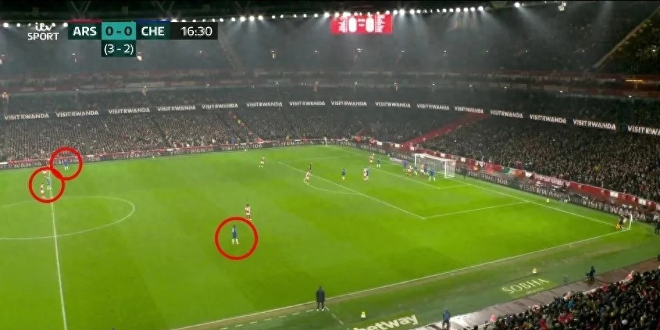 当时阿森纳获得角球机会,全队压入禁区准备进攻。然而令人意想不到的是,切尔西竟有三名球员——德拉普、古斯托和韦斯利·福法纳——主动放弃防守,集体撤至中圈附近,摆出随时打反击的架势。