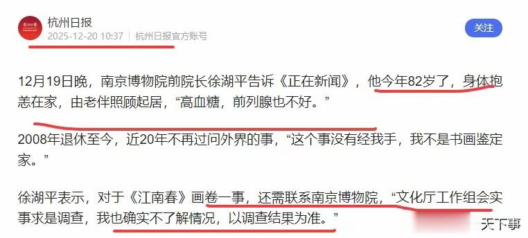 面对记者的提问,前徐院长的回应很反常,他先是抬出自己82岁的高龄,还生着病在家不问世事来卖惨,然后否认了自己书画鉴定家的身份,称当时并不是他经手的,表示对这件事的相关情况不了解,也不方便说三道四。