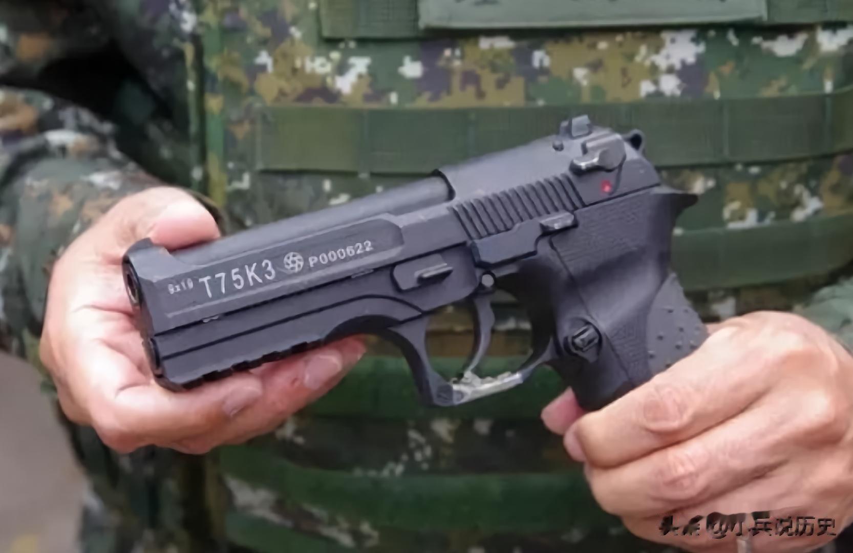 T-75型手枪T75手枪是于1986年(民国75年)由中国台湾省联勤205兵工厂开发,原型仿自贝瑞塔92F手枪。T75手枪为单/双动扳机,试作型与92F相同,但定型版有所改良,扳机护圈,顶壳杆都重新设计,照门座与套筒采一体化设计,因要维持射击精准度,加工难度相对地比较高,因此T75手枪的制作工艺相当不错。T75与T75K1皆可搭配联勤402厂研发的XT82雷射指示器,最新版本的雷射指示器开关可由扳机连动(由205厂研发)。