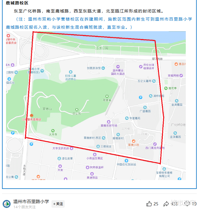 然而,在《2025年温州市百里路小学(集团)招生公告》中,提到:温州市双屿小学营楼校区在拆建期间,施教区范围内新生可到温州市百里路小学鹿城路校区报名入读,与该校新生混合编班就读,直至毕业。