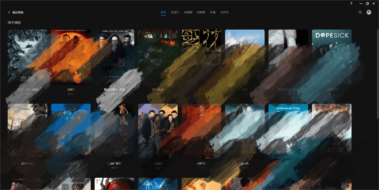 我这里是已经配置了文件夹的影视墙,界面上方为添加好的媒体库,点击右上角头像-控制台即可进入影院详细设置(这个在第二部分详细讲解)。