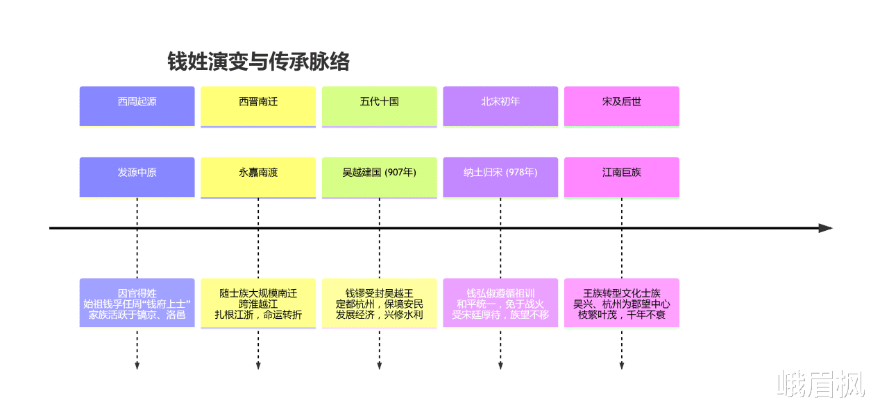 至此,“钱”姓,完成了从西周官宦世家,到南迁士族,再到创立王国、成为江南望族的完整演变,其历史轨迹与江南地区的开发史紧密交织,融为一体。