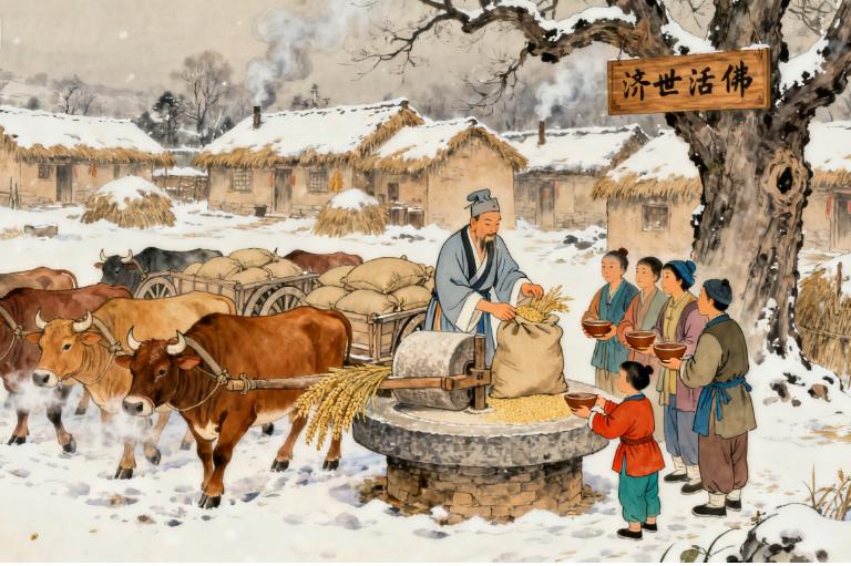 记得去年冬天,临安城遭遇了百年不遇的大雪,城外的几个村落被大雪封了路,村民们断了粮,眼看就要饿死在寒冬里。消息传到城里,官员们互相推诿,谁也不愿冒着严寒去救济村民。就在大家绝望之际,济公挑着两筐粮食出现在了城门口。
