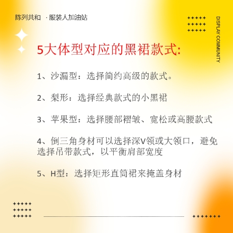 最后总结一下,针对5大体型,适合的小黑裙款式: