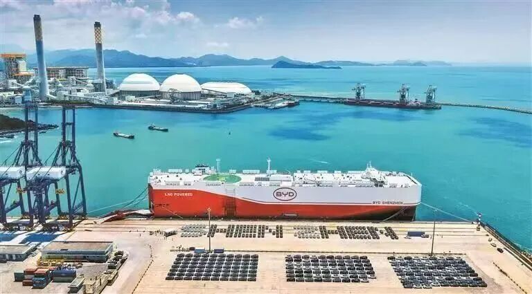 下图:自2021年开始,比亚迪“重仓”深汕特别合作区,先后落子四期项目,从零部件到电池再到整车,搭建起完整的内部产业链。下图是位于深汕特别合作区的小漠国际物流港(图源:深圳特区报)