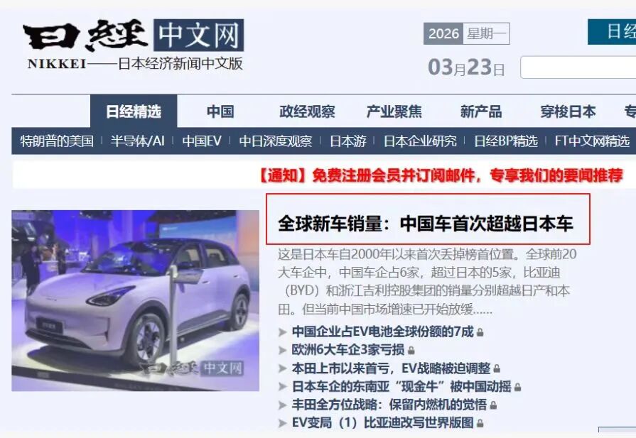 另一个是全球王座的正式易主。据《日本经济新闻》统计,2025年中国品牌车企全球累计销量近2700万辆,同比增长10%;日本车企全球销量则小幅下滑至约2500万辆。这是自2000年以来,日本汽车行业首次丢掉全球销量榜首的位置。