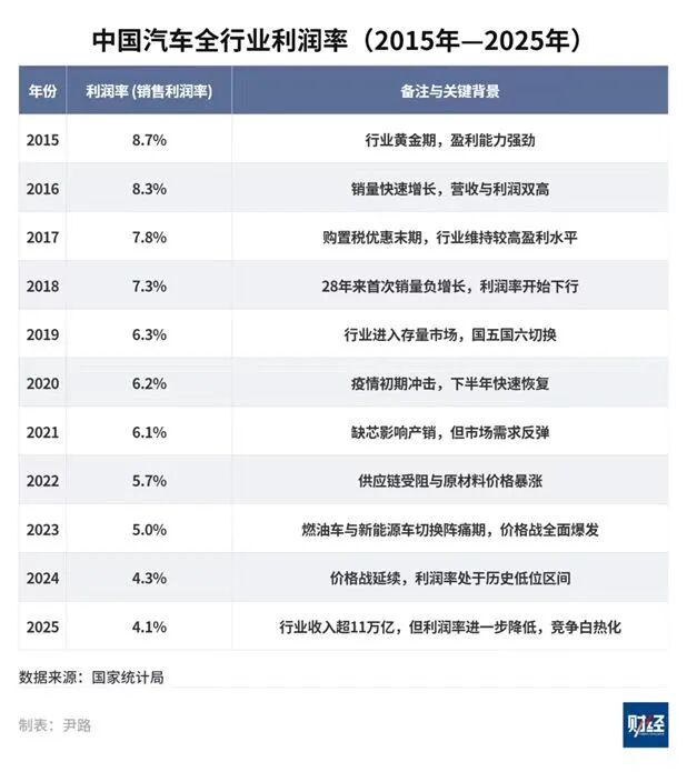 中国车企中,利润率最高的奇瑞仅为6.5%,比亚迪、吉利、长城等头部企业的利润率均不到5%,部分自主品牌的净利率甚至不足3%。