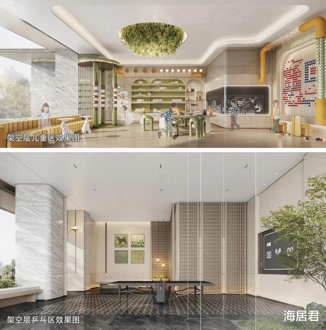架空层升级为功能拉满的泛会所,有封闭式儿童娱乐区,还有开放式活动区、社区沙龙、会客区,全龄段业主都能在此找到“生活彩蛋区”。
