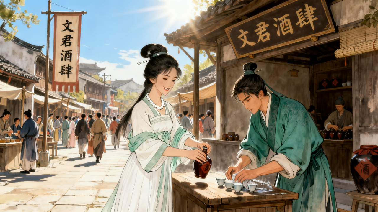 家徒四壁,无米下锅。司马相如脱下儒衫,典当衣物;卓文君褪去珠翠,亲自操持家务。为了生存,他们回到临邛,在街头开了一家小酒肆。