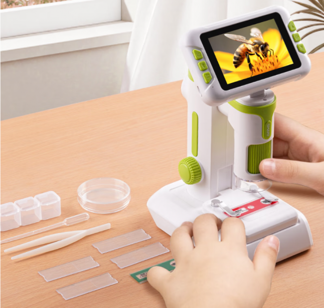 1600倍高清成像,上下智能补光,洋葱表皮细胞、蝴蝶翅膀的鳞片、树叶的纹理都看得一清二楚,和初中生物教材同步,学习玩耍两不误。手持便携的设计,出门踏青也能揣兜里,随时开启户外微观课堂;还能连手机拍照录像,把奇妙的微观画面分享给亲友。