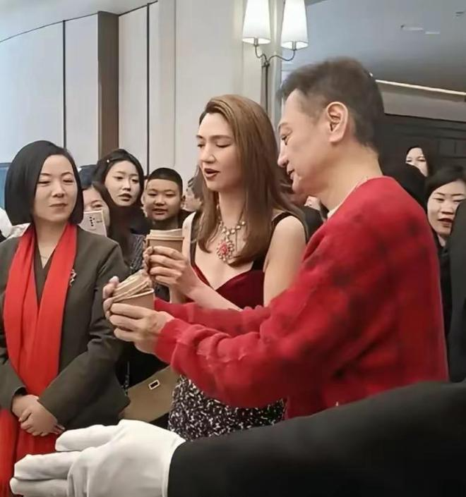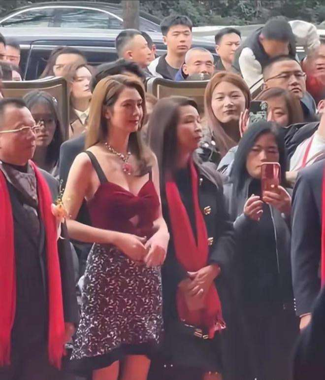 大冬天的穿着红色吊带,露肩膀、露脐和大腿,穿着高跟鞋,整个人在寒风中冻着,而且围观的份特别多,大家都穿着棉服,只有她还在卖力演出,倒是有点自降身价,但为了赚钱这样的工作也得干,不愧是初代港星了,仪态真是现在娱圈女明星不能比的。