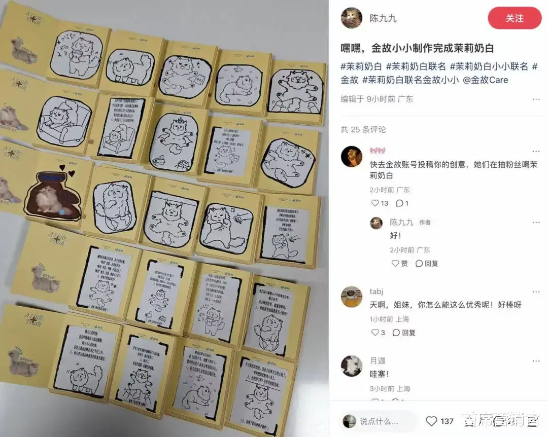 最近与网红小猫“金故猫舍的方小小”的联名,便是“小票营销” 的教科书式演绎。