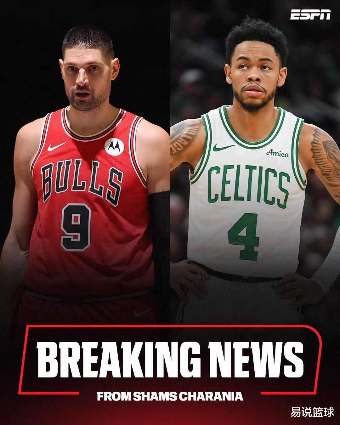 第一笔交易公牛将武切维奇和一个次轮送去凯尔特人,换安芬尼·西蒙斯和一个次轮。据薪资专家Keith Smith报道,凯尔特人得到掘金2027年的次轮签;公牛得到森林狼、鹈鹕、尼克斯和开拓者中顺位最高的2026年次轮签。武切维奇终于是交易出去了。在过去很长一段时间,每次出现交易流言,武切维奇的名字总是被提及当中,但是以他的年龄和表现来说很难交易送出,随着这笔交易达成,武切维奇终于是离开了公牛。
