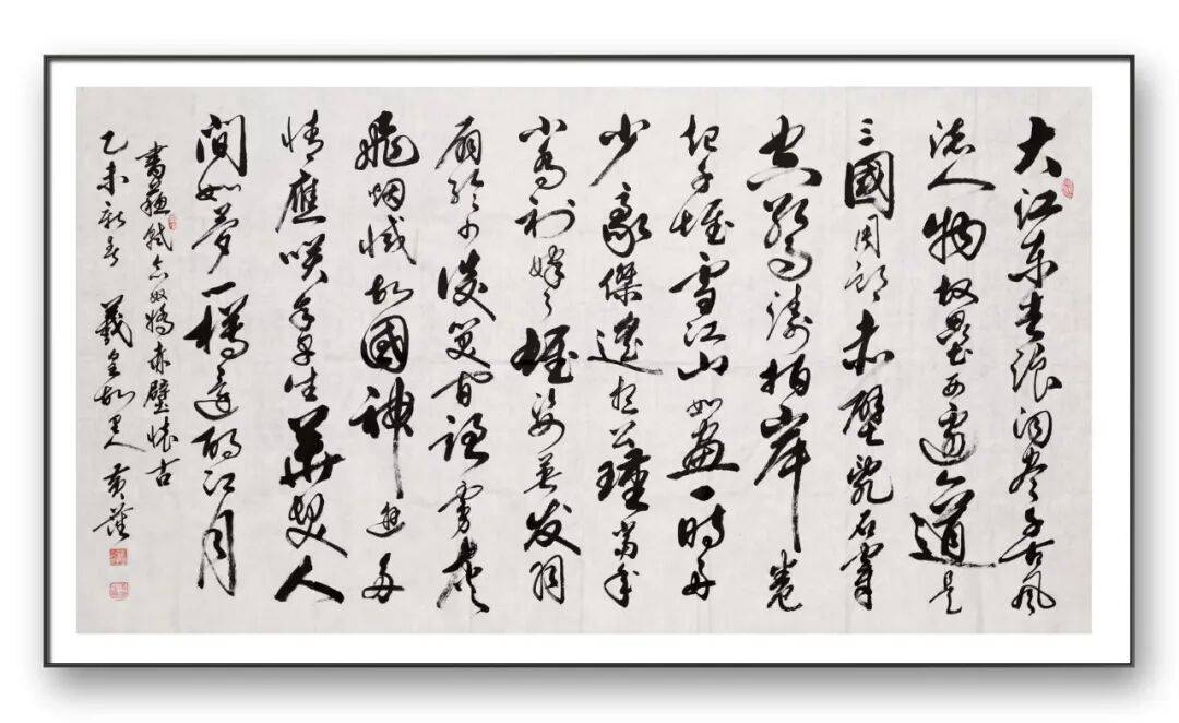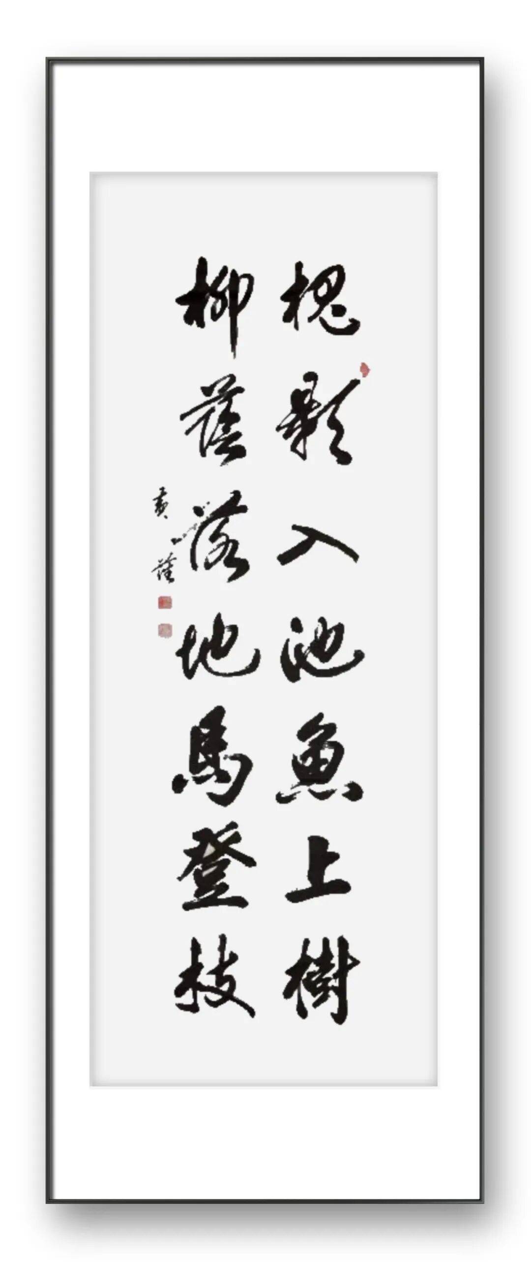 笔墨之间,藏着先生对书法艺术的深刻领悟与精湛技艺。黄藩先生认为,“书法是点画的巧妙组合,是生命的悲喜交融”,这一理念贯穿其创作始终。他精准驾驭笔墨的粗细、向背、疏密、开合,使每一幅作品都兼具爽朗痛快与清新自然的气质。其楷书端庄工稳,笔力透纸,点画分明却不刻板,结构严谨而不失灵动,尽显“楷如峰”的端庄大气;行书流畅自如,捭阖有度,笔意如行云流水,兼具“行如云”的圆融灵动;草书纵横恣肆,气势磅礴,笔走龙蛇间尽显“草如舞”的狂狷之美,却始终不脱法度,做到了狂放而不逾矩。书法评论家赞誉其“下笔如行云,似流水,神采飞扬,笔锋游动,擒纵弛张,无一处含糊懈怠”,恰是对其笔墨技艺的精准诠释。