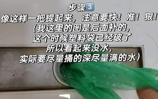 只需找个足够大的塑料袋,把它塞进堵塞的管道。倒入适量清水,然后用力提拉塑料袋,制造压力,排水就能疏通。