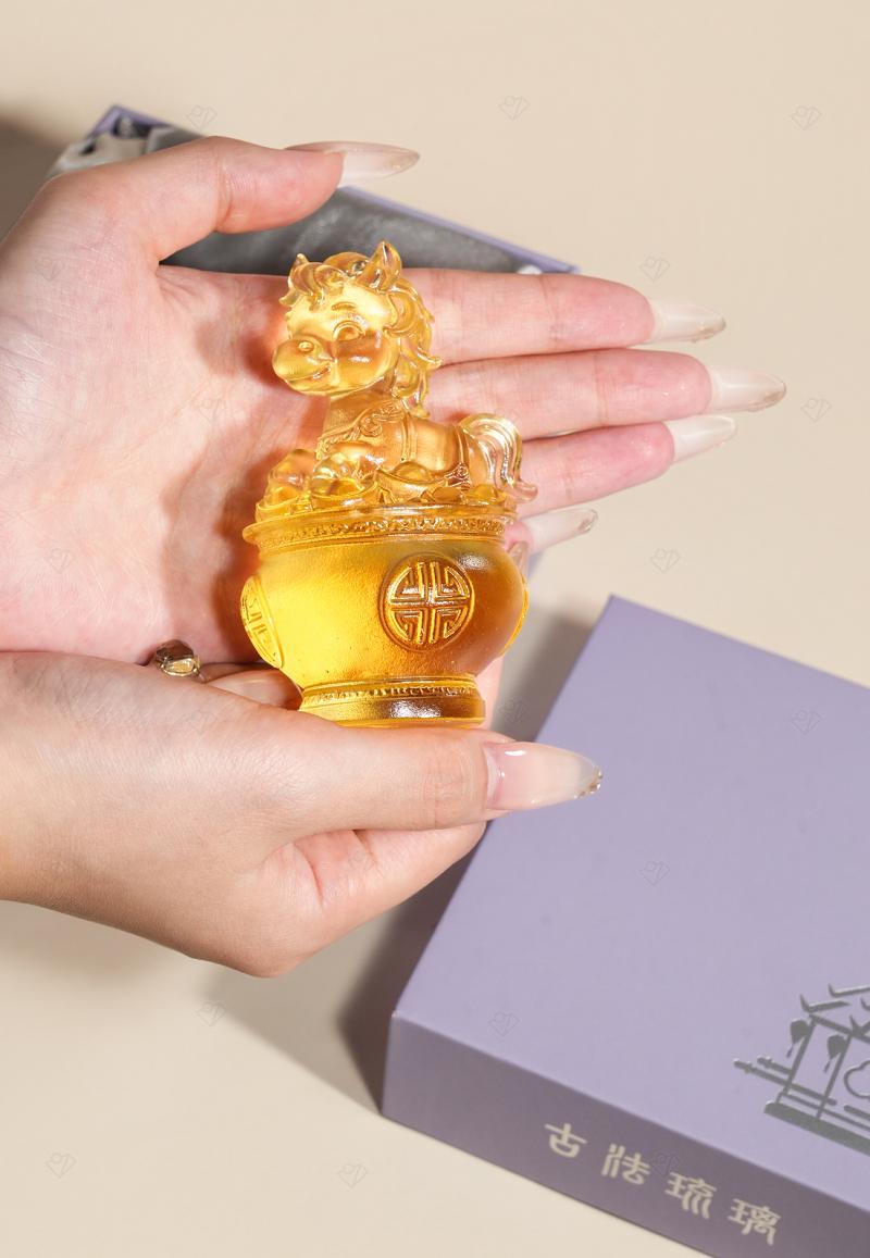 这种传承与创新的结合,不仅让古法琉璃马踏元宝摆件焕发出新的活力,也为传统文化的传承与发展提供了新的思路和方向。它提醒着我们,传统文化并非是一成不变的古老符号,而是可以通过创新与现代社会紧密相连,在新的时代背景下绽放出更加耀眼的光芒 ,让更多的人了解、喜爱并传承我们的传统文化。