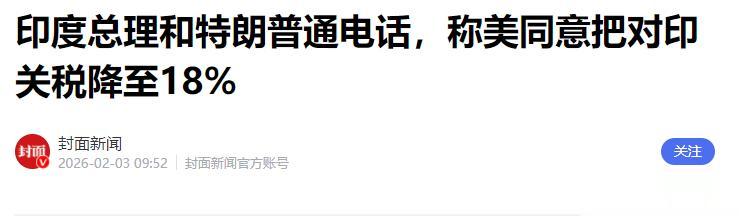 2月2日,特朗普的一通电话和一篇社交媒体长文,把价格直接甩在了桌面上:对印度的关税,从高得让新德里喘不过气的50%,一下子降到18%。