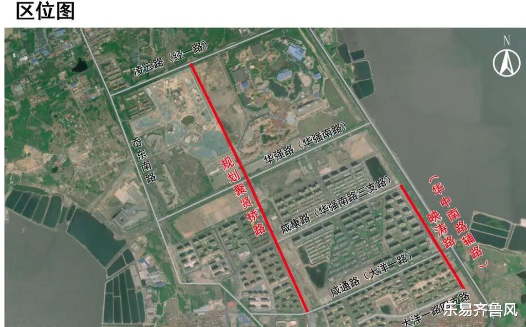 1.规划聚贤桥路(凌云路-华强路)红线宽度40米,两侧各7.5米绿带,双向6车道;规划聚贤桥路(华强路-咸通路)红线宽度33米,两侧各8.5米绿带,双向4车道。