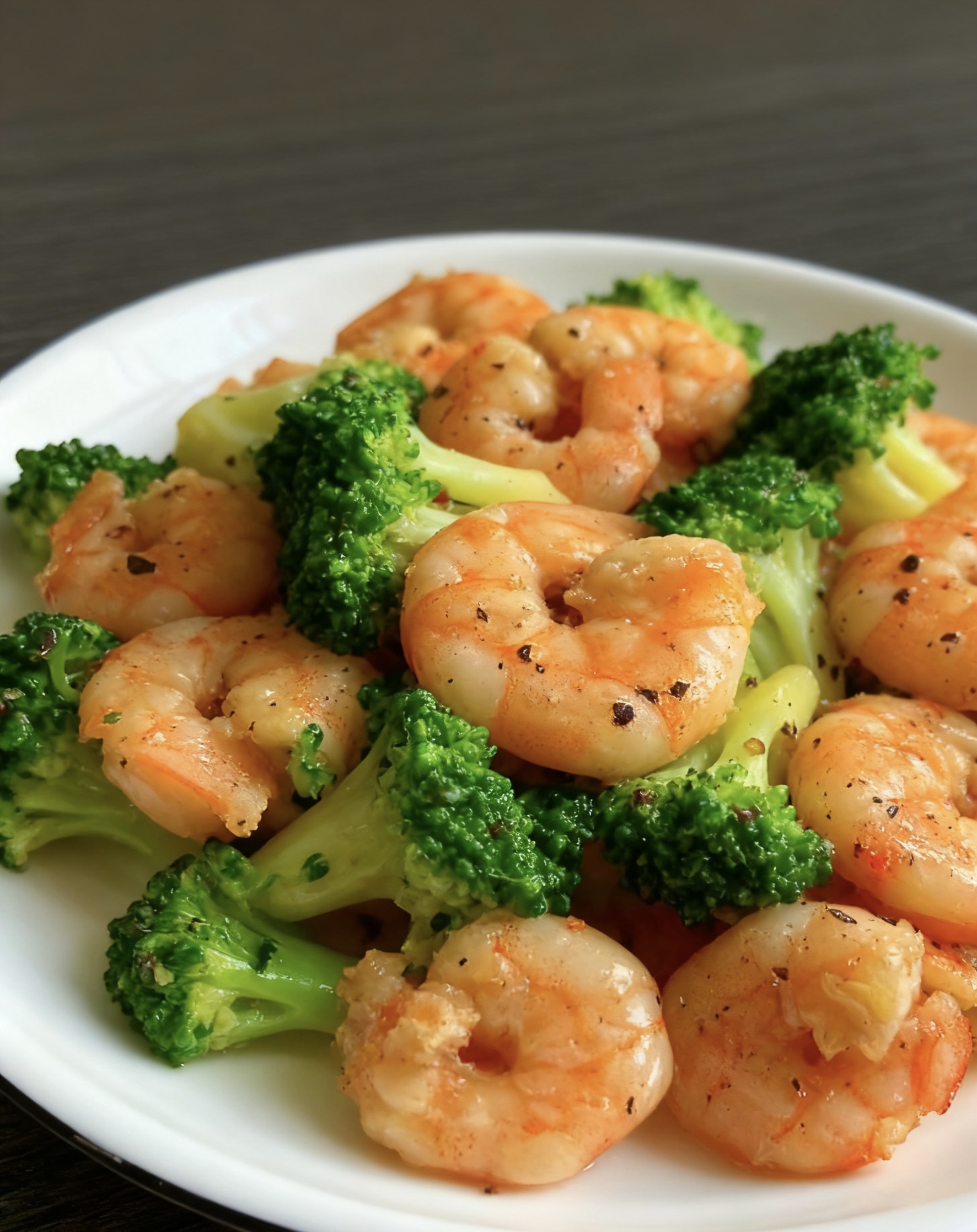 锅里留底油,蒜末爆香,西兰花倒进去翻两下,再把虾仁请回锅里。生抽、蚝油、胡椒碎,比例全靠手感:生抽给颜色,蚝油给甜味,胡椒碎负责点睛。大火翻炒一分钟,让味道在锅里打场闪电战,出锅!