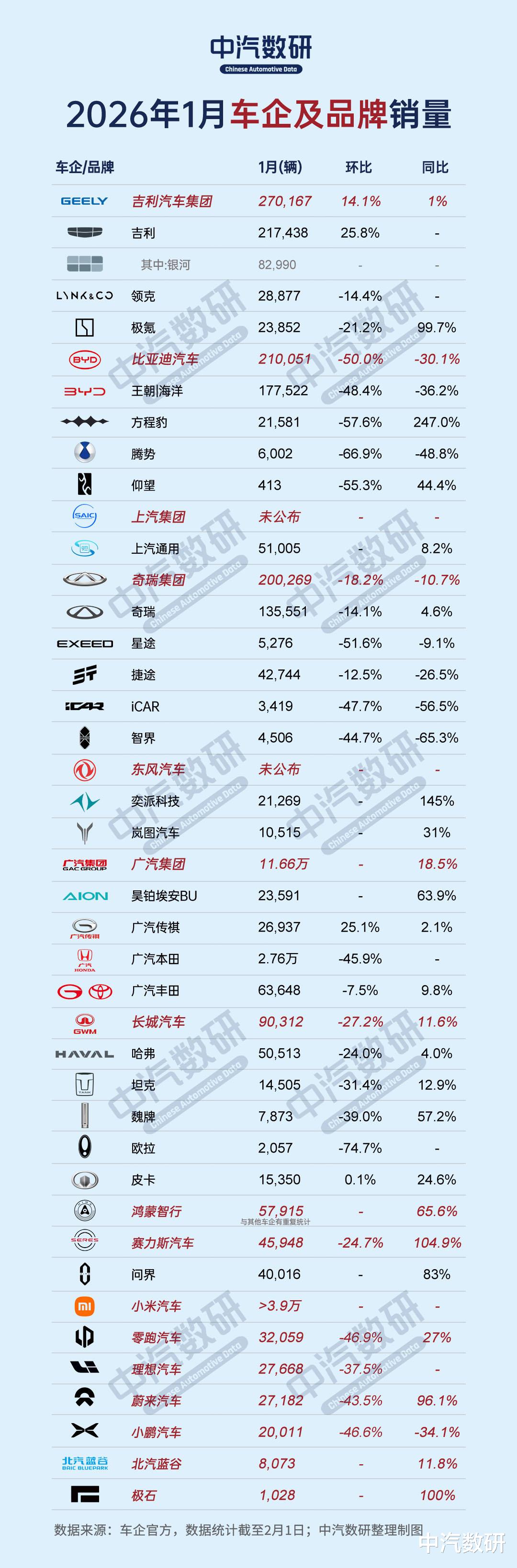 今日,部分车企已经陆续公布2026年1月销量: