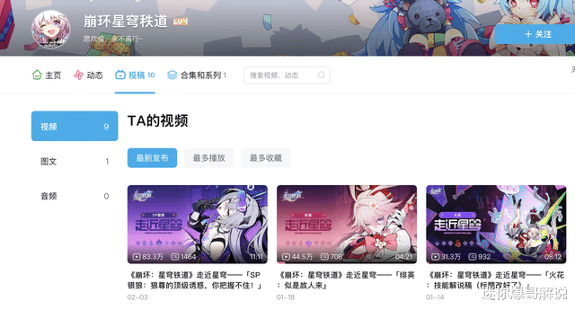 而且他不止制作了银狼的走近星穹节目,还给火花、绯英这些即将在二相乐园版本上线的新角色制作了同款节目,火花的标题还跟官方版本呼应上了,真玩家点进主页看到这些二创作品都得愣一下。