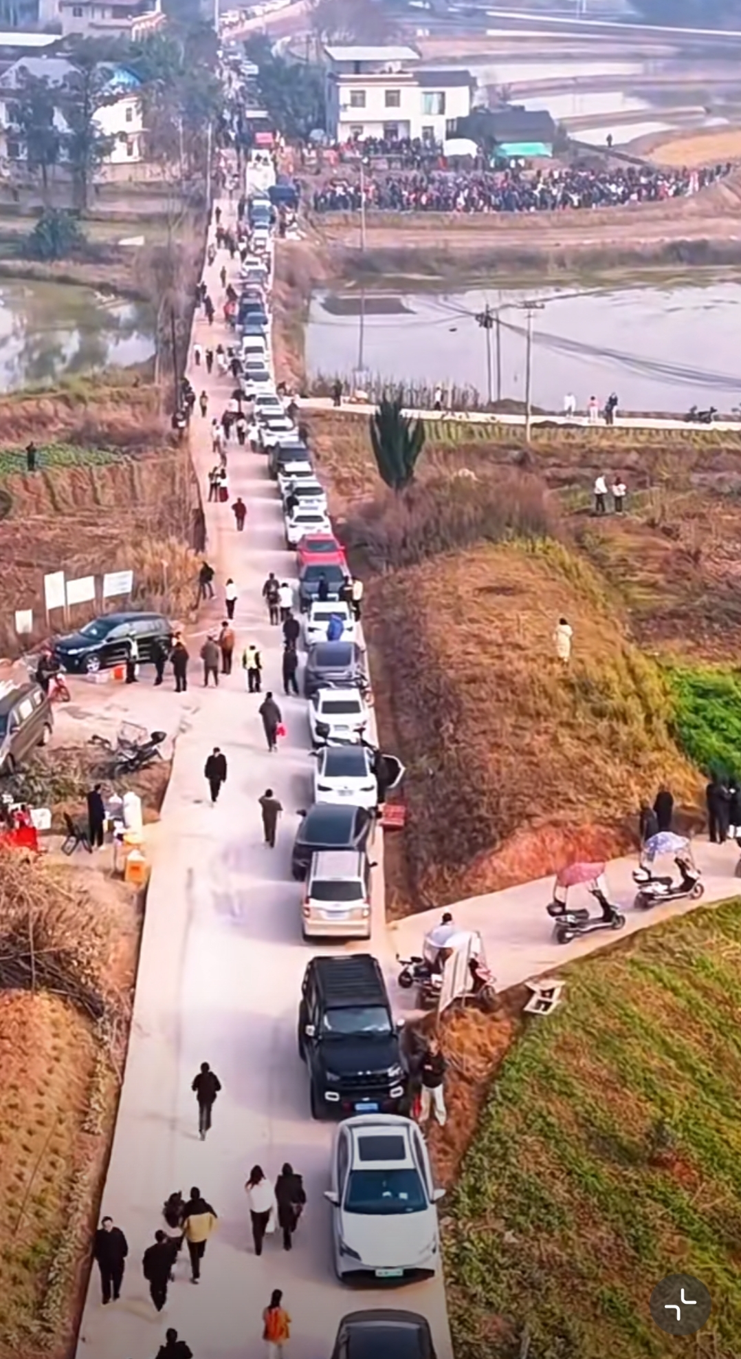 而在1月11日当天,四五千位网友从世界各地赶来,车子也从呆呆家门口,排到了村尾几公里外,其中还有保时捷一类的豪车。