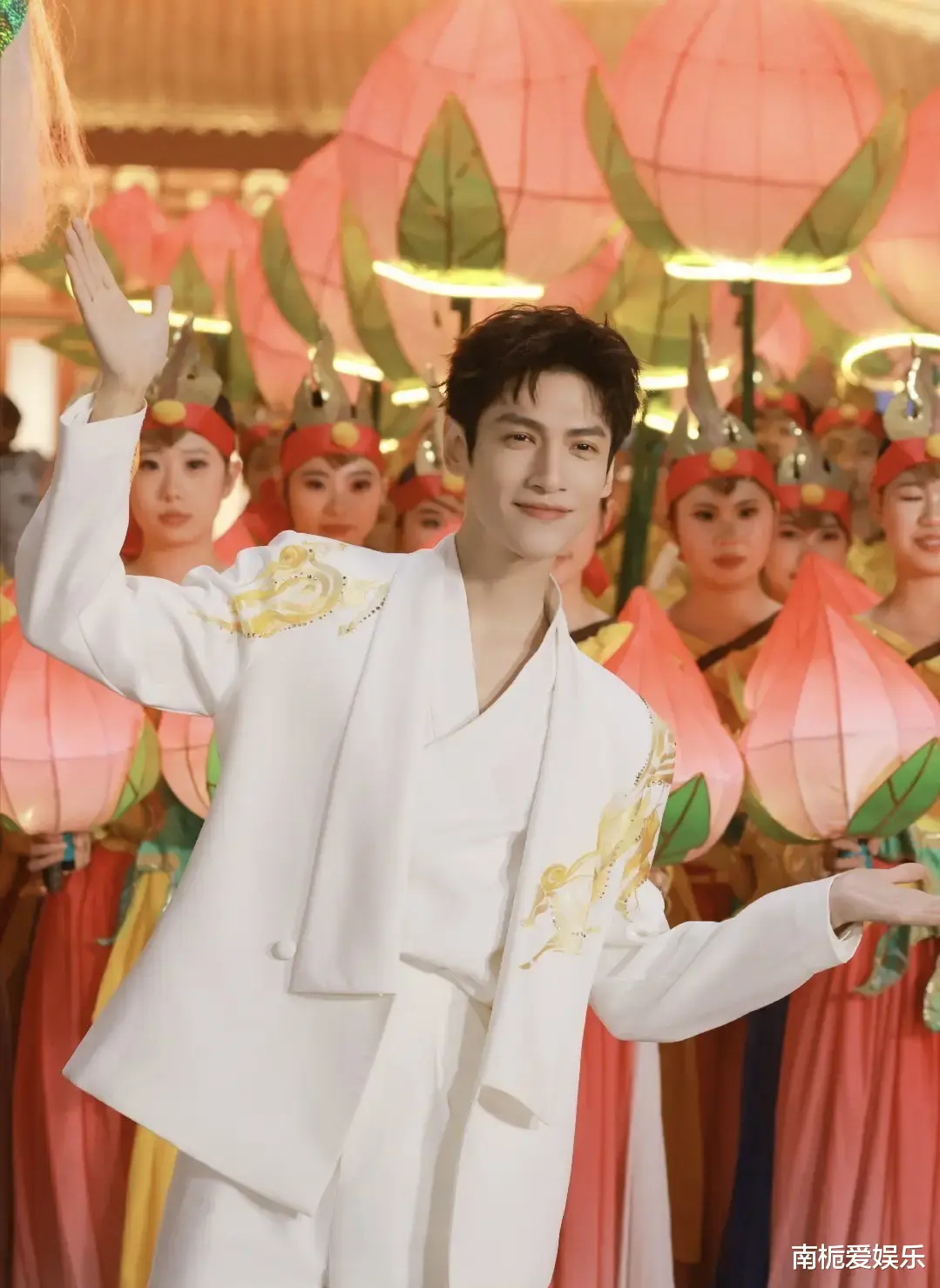 高潮时刻,宜宾合江门的壮阔江景化作天然幕布,蜀南竹海的光影在身后流转,川剧念白与熊猫意象穿插其间,构成了一幅流动的“川味”画卷。罗云熙仪态挺拔,侧颜轮廓被网友戏称“骨相建模级精雕”,每一个眼神都充满故事感;谭松韵用温暖的笑容治愈全场。当两人在歌声中相视而笑,无数观众仿佛看到了当年的杨芳芳和郭阳跨越时空而来,这种“顶峰相见”的默契与温情,让“活久见同框”成为了当晚最动人的注脚。
