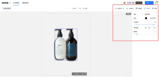 第四步,在编辑面板中可以继续优化,比如调整边缘羽化、移动商品位置、增加阴影,让图片更有立体感,更符合平台展示效果。