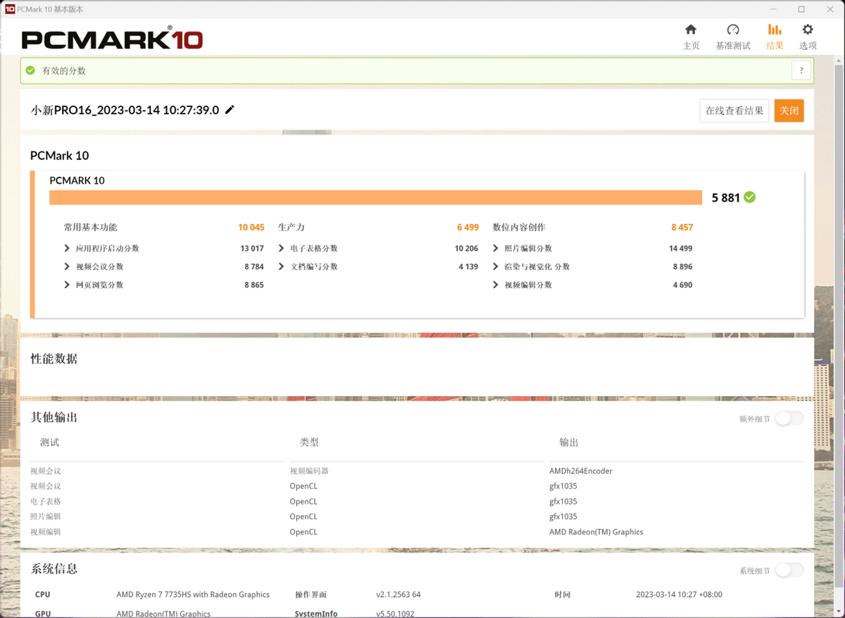 接下来就是理论性能实测了,这个配置办公肯定妥妥的,先跑一遍基准测试,主要还是验证锐龙R7 7735HS和Radeon 680M核显的游戏性能。