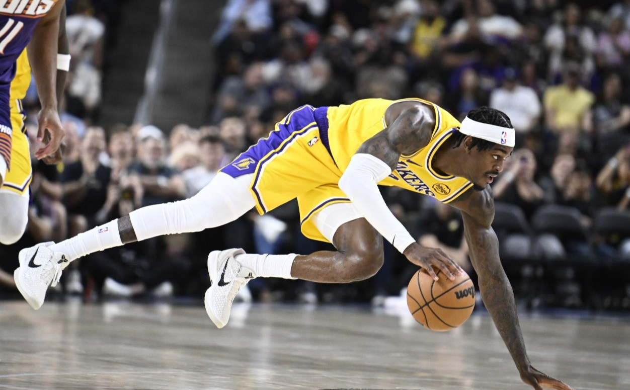 里夫斯伤退,下半场没有上场,斯玛特顶替其首发,湖人的进攻更加依仗这些边角料球员三分的随机性。