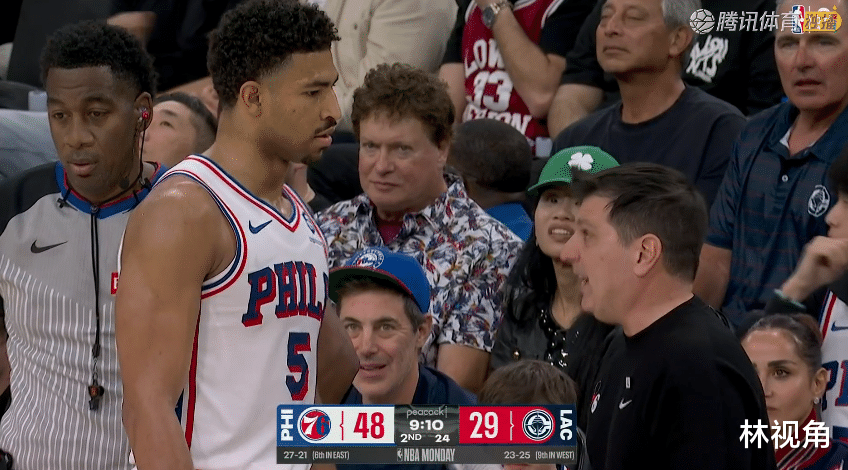 这一节后半段,76人三分命中率开始下降,马克西和恩比德接连外线打铁,快船趁机打成一波反击高潮,将分差缩小到14分,打停了76人。