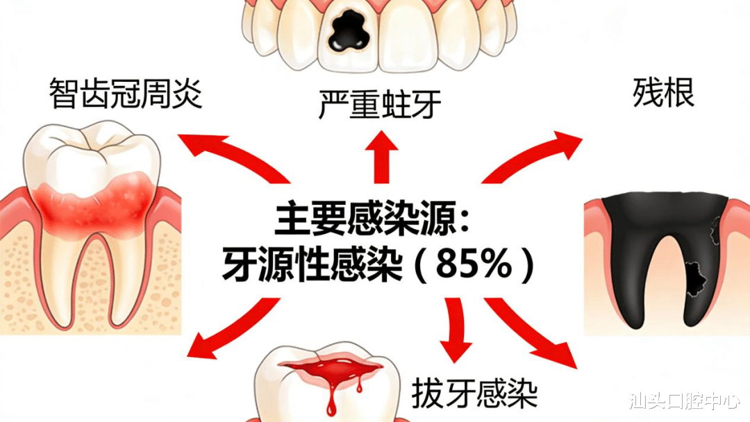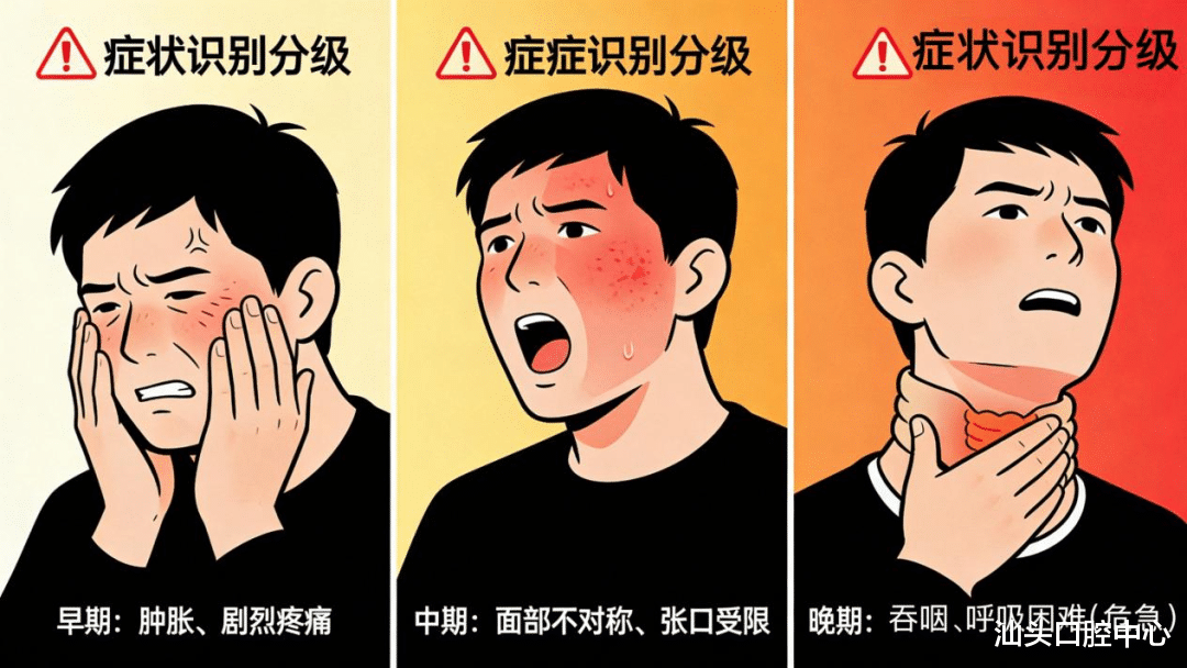 与普通牙痛不同,间隙感染的危险性在于炎症可能向深部扩散,严重时可能压迫气道或引起全身性感染。