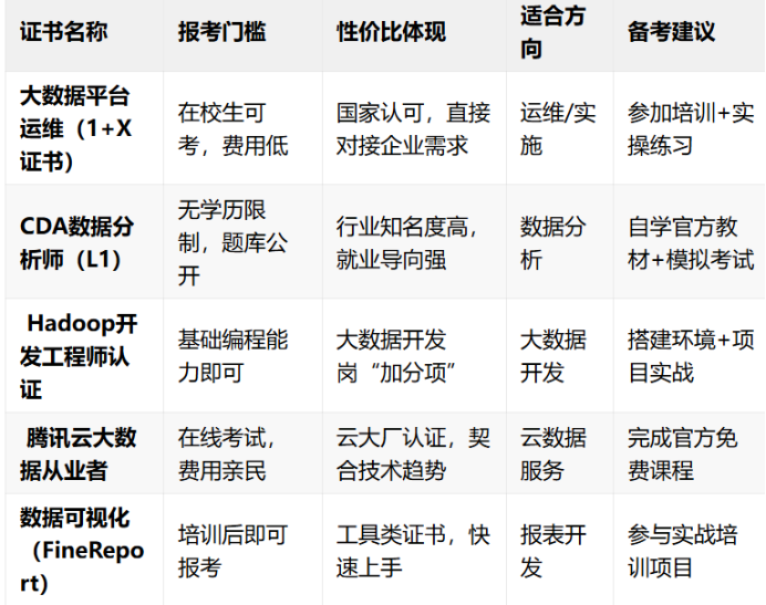 为什么一定要考证?证书的本质是系统化学习的里程碑。大数据领域技术更新快,通过考证可以:避免自学散漫,逼自己阶段性总结。获得行业认可的资质背书,提升求职信服力。融入职业社群,获取更多资源与人脉。